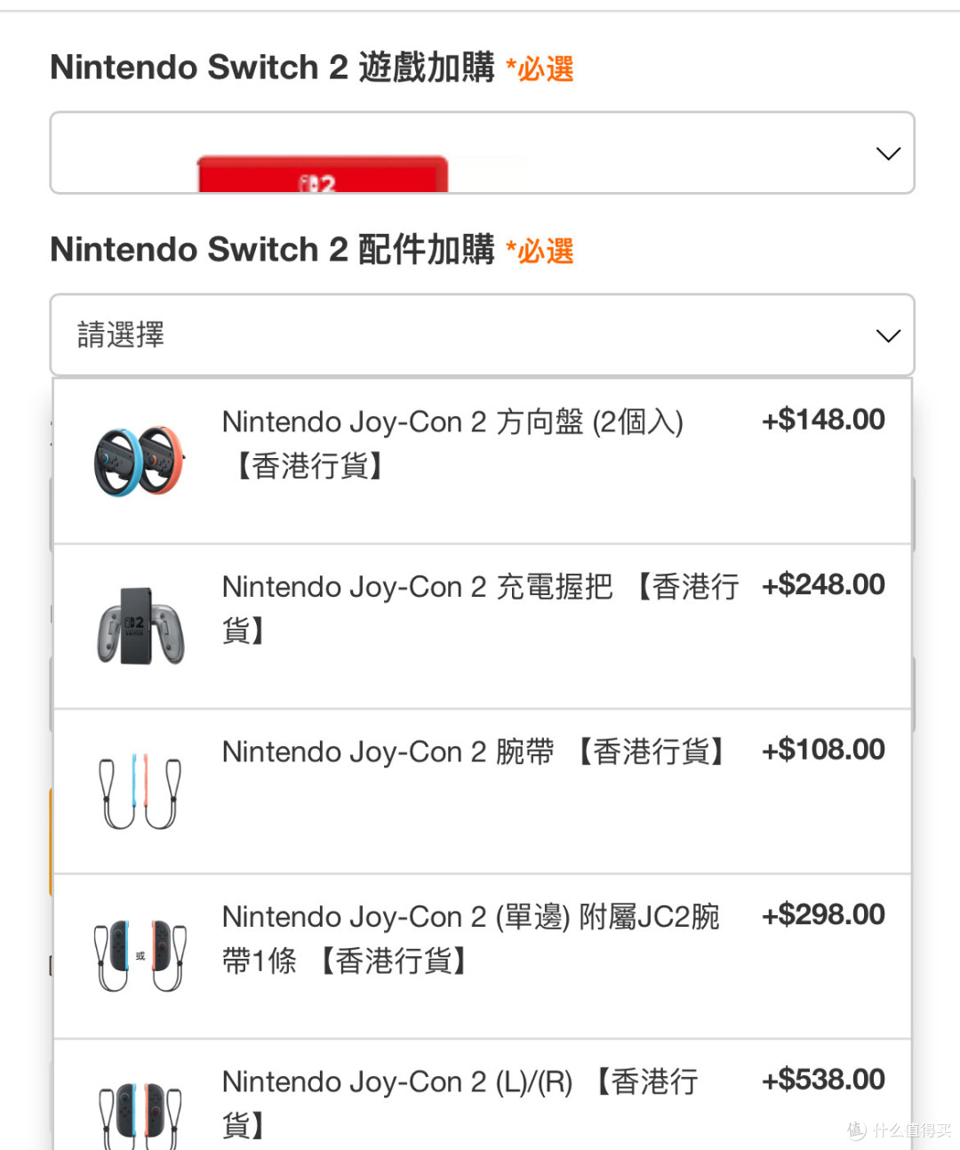1. 基础价格:4,786港币(含Switch 2主机+马力欧卡丁车世界+Pro 2手柄),必须购买一个游戏和一个主机配件!