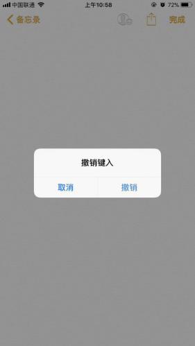如果不小心删除了正在编辑中的备忘录内容,我们只需摇一摇手机,触发“撤销键入”功能,然后点击“撤销”即可将刚刚误删的内容恢复回来。