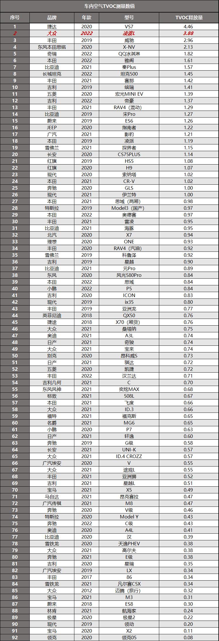 经过在23±1℃恒温环境中16小时的封闭,这辆车的车内空气TVOC释放量测量数值为3.88毫克每立方米。