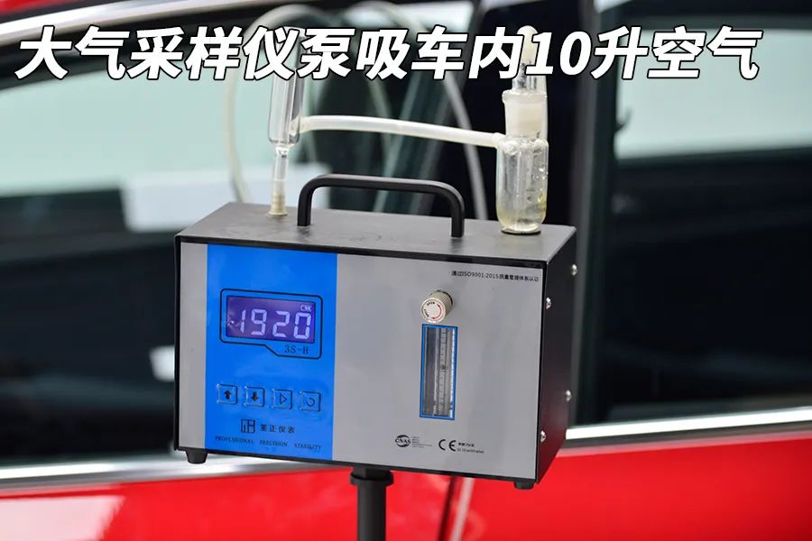测试方法:将测试车辆在自然环境中,打开车门车窗进行完全通风;随后,将一根硅胶软管固定在司机头枕附近,模拟人呼吸位置;关闭车门车窗,将车辆停在恒温23±1℃的环境中密封静置16小时;使用采样仪从软管泵吸出10升车内空气,与酚试剂反应;将显色剂滴入酚试剂中,静置15分钟;使用醛正甲醛检测仪将显色后的样本进行检测,得出结果。