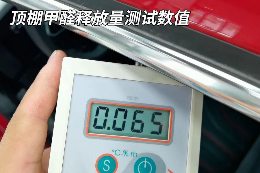 座椅的甲醛释放量测量数值为0.050毫克每立方米,顶棚中的甲醛释放量测量数值为0.065毫克每立方米。