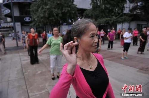 重庆广场舞大妈戴耳机跳舞,"噪音"转"静音"模式。图源:中新网
