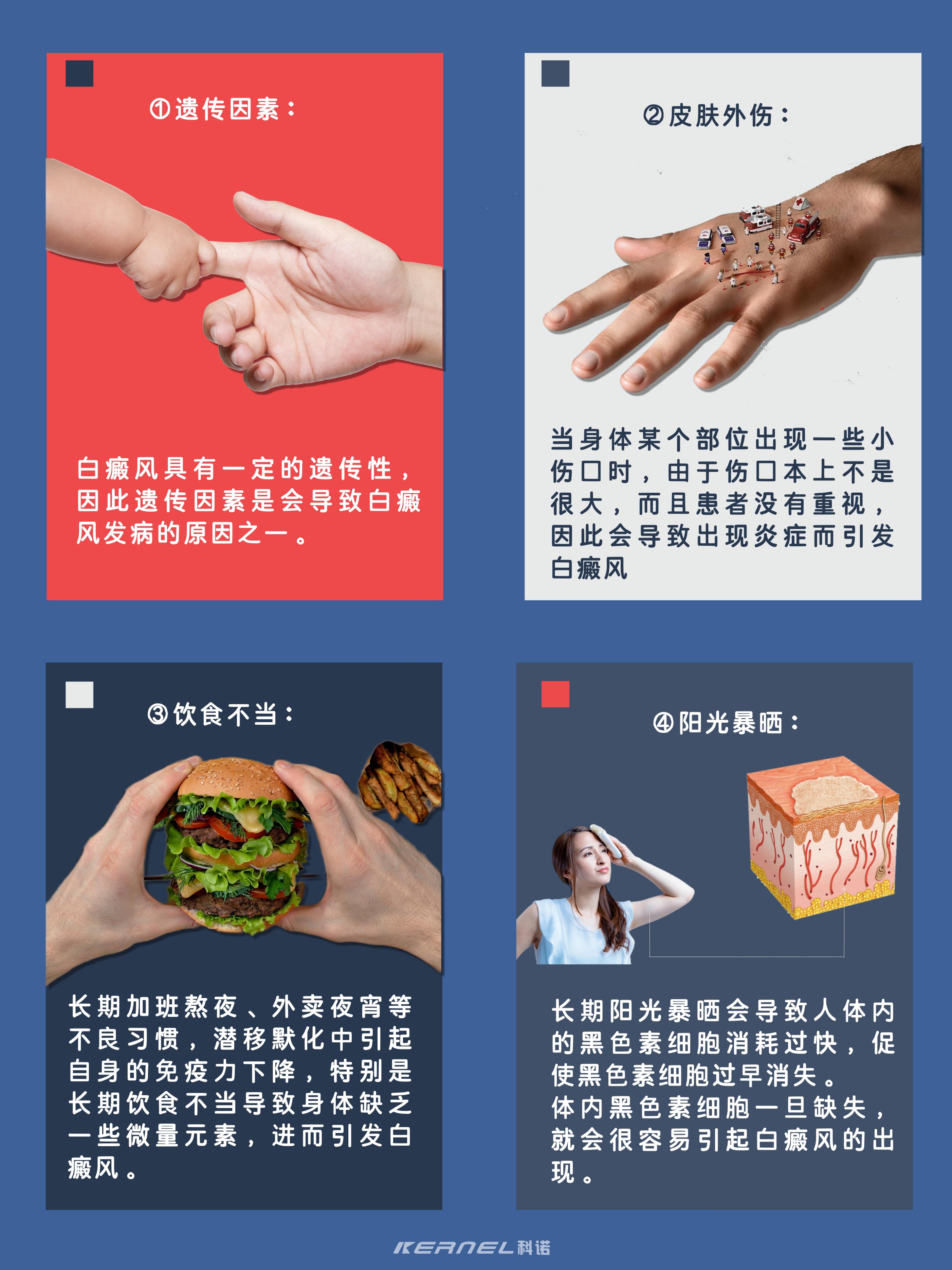 时下很多年轻人都会存在饮食不当的问题,加班熬夜、外卖夜宵等等不良习惯,潜移默化中引起自身的免疫力下降,特别是长期饮食不当导致身体缺乏一些微量元素,进而引发白癜风。
