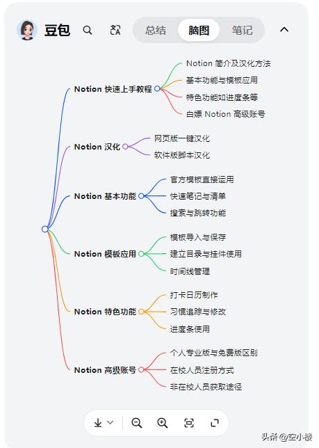 打开B站视频(必须是带有字幕的视频),点击视频右侧的豆包标志,选择“总结视频”。它会自动生成时间轴,点击时间轴,视频进度条会跳转到你感兴趣的地方。并且,豆包会把视频的核心内容和亮点进行总结,也可切换为脑图(思维导图)内容展示,清晰可见。