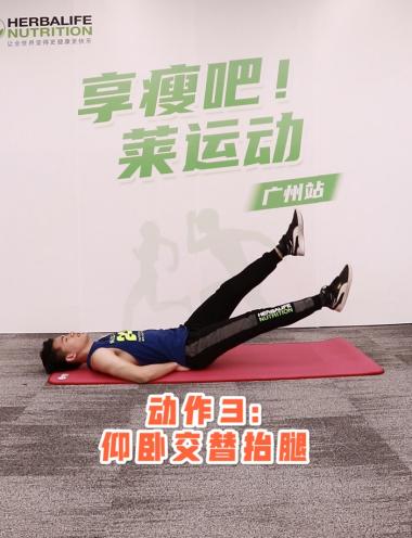 动作三:仰卧交替抬腿。把手垫在臀部后面,腿伸直下落的时候不碰到地面,做2组。