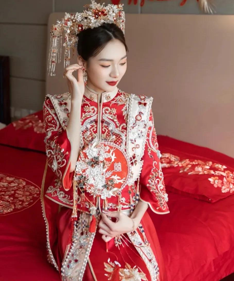 中式嫁衣这么美,婚礼上又多了一种选择凤冠霞帔