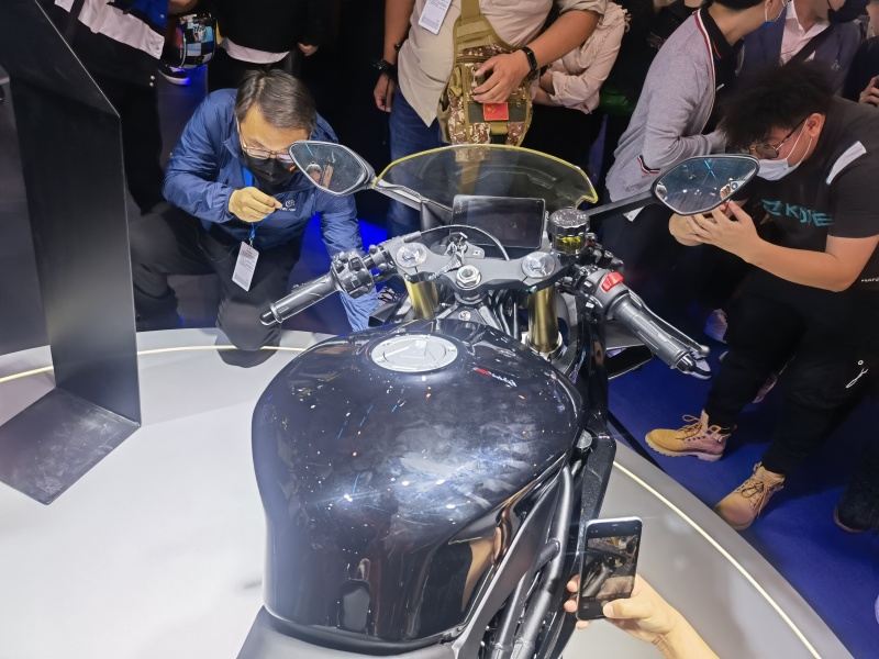 [懂车帝原创 产品] 在刚刚开幕的2023年北京摩托车展上,凯越450RR正式发布,标准版售价35800元,性能版售价39800元,该车此前名为400RR,几天前刚刚更名为450RR。动力方面其搭载排量为443毫升的四缸发动机,填补了国内小排量四缸发动机的市场空白。