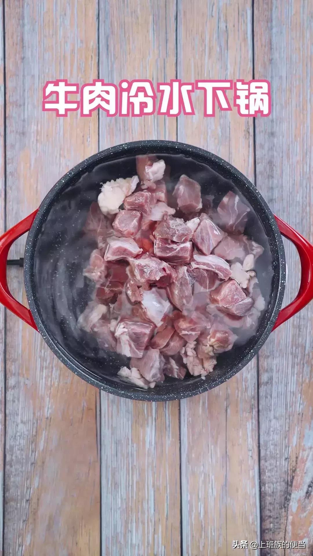 牛肉切块冷水下锅;