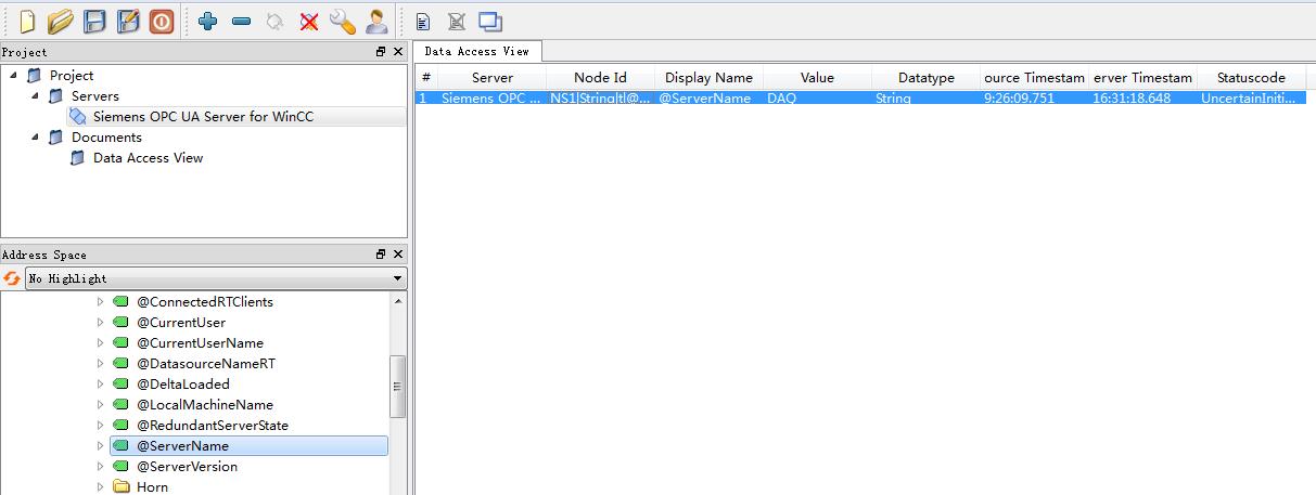 至此,完成了OPC UA客户端对wincc 服务器的访问。