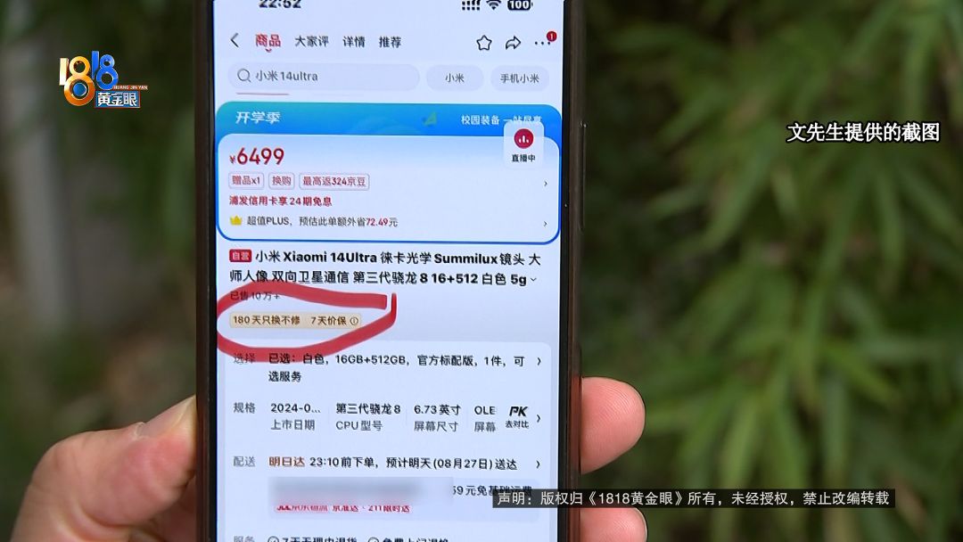 文先生:跟“小米”客服态度是一致的,这个手机的IP68的防水,在日常使用中会逐步减弱。我的诉求是按照“京东”平台上的宣传,180天内只换不修,对于这部手机的功能,孩子是喜欢的。