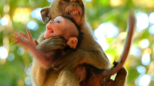 如果我们只谈论哭声,那就不一样了,所有灵长类都会发出哭声,而且有些比我们的宝宝“哭得还凶”,比如恒河猴。