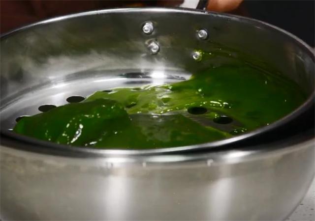 3.锅中烧水,水开后将切好的菠菜焯水,稍微烫一下后捞出。