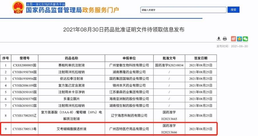 首个艾考糊精腹膜透析液国内获批