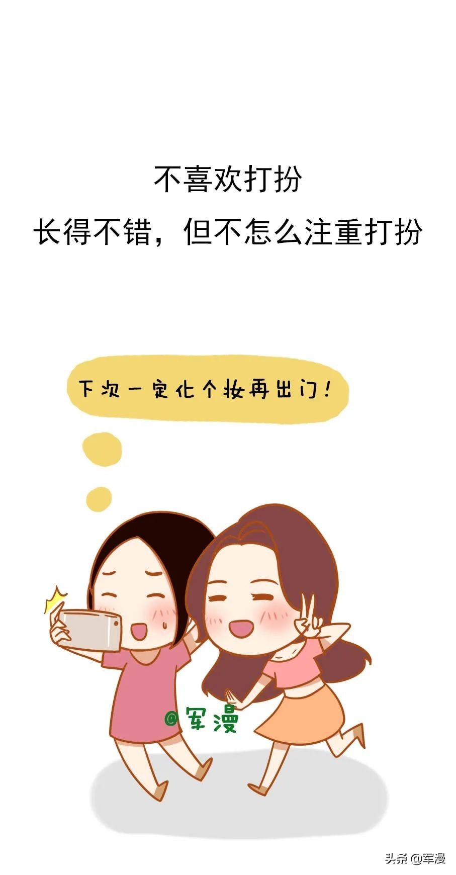 不喜欢打扮,长得不错,但不怎么注重打扮。