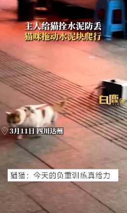 主人给猫拴水泥防丢,猫咪拖20斤重水泥爬行,网友:我知道这个品种,叫做犟种