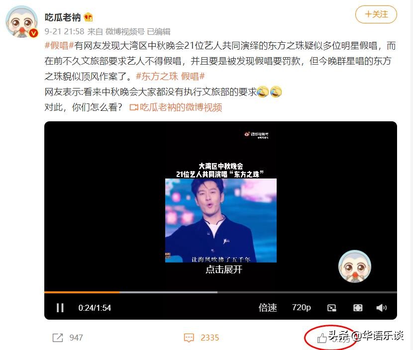 后来我上网一看,原来很多网友已经因为这个事吵得沸沸扬扬了。“东方之珠 假唱”的话题已经有数千讨论、上千万阅读,最热门的一条微博动态已经有5万多的点赞。