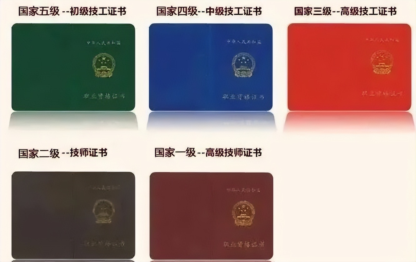 资格证书一共分为5个等级:包括初级(五级)、中级(四级)、高级(三级)、技师(二级)、高级技师(一级)。