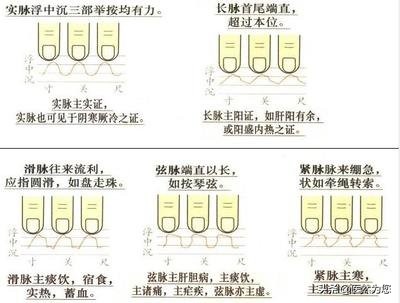 实脉类包括实脉、滑脉、紧脉、弦脉和长脉五种脉象,他们的共同特点就是是号脉时感觉脉来应指有力。