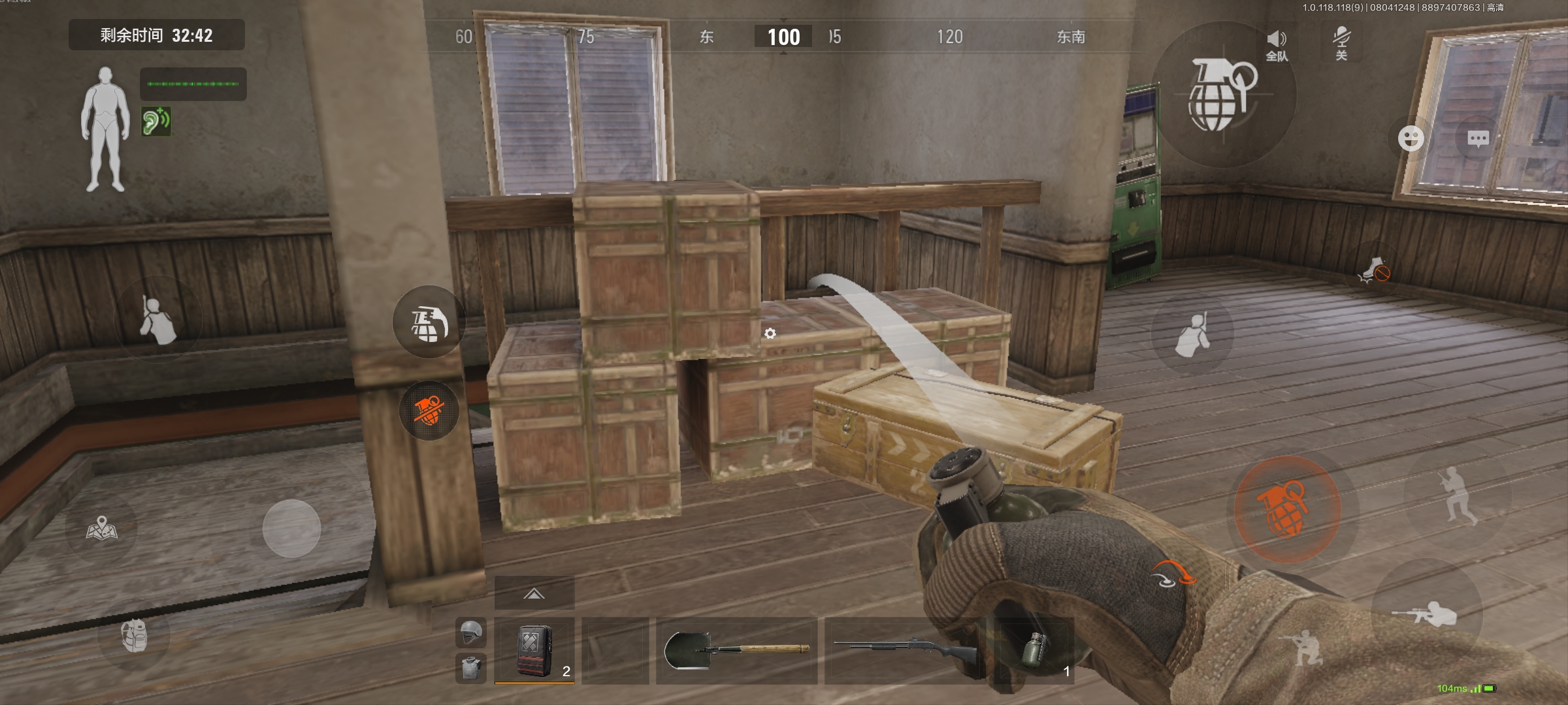 所以这个雷适合我们在房子外围的时候往房子里面扔雷,这样子敌人就算多掩体后面也没用。进攻雷范围大,对于一个房子,很容易能把敌人炸倒。下图为演示图: