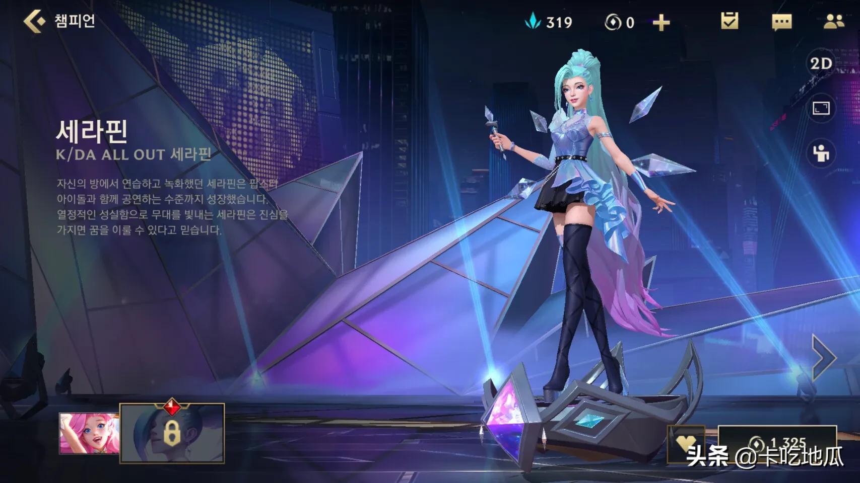 再来看看萨勒芬呢的皮肤吧,只能说各有所好吧!对比王者荣耀的皮肤,都是原皮肤暗淡,之后的皮肤越花里胡哨越贵!而세라핀的原始皮肤就很亮眼,一度认为是某个皮肤来着!反正我认为非常值得入手!