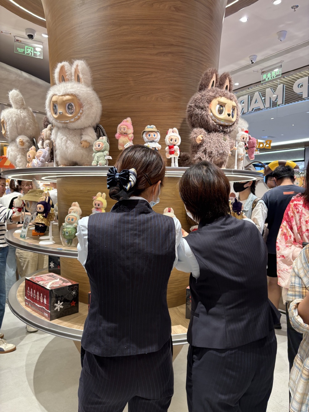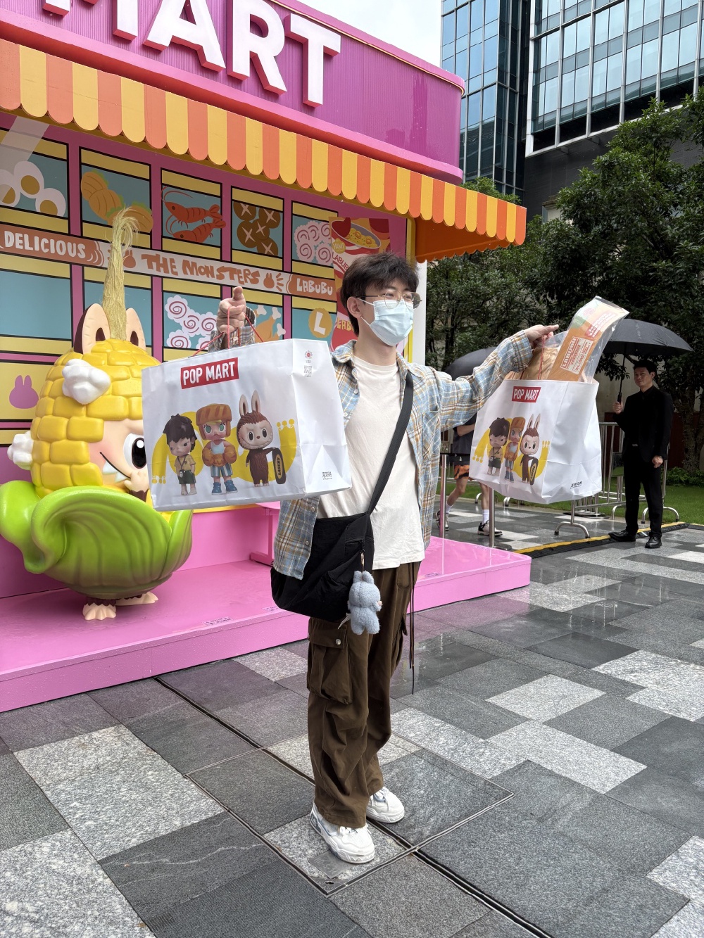 从嘉定赶来快闪店的LABUBU资深玩家王先生告诉澎湃新闻记者,近两年来,他与同伴为LABUBU花费三四十万元,基本每次新品发布都会来现场,作为成年人,已经有经济实力满足自己的小喜好。