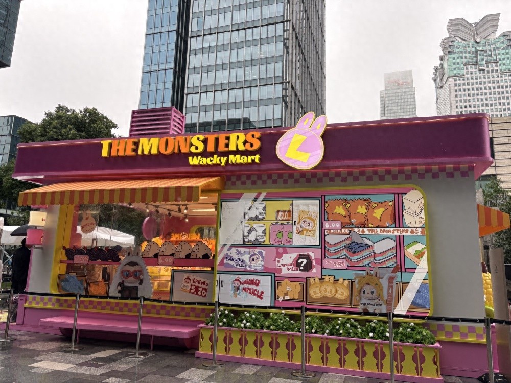 6月13日,THE MONSTERS怪味便利店系列主题快闪华东首展登陆上海静安嘉里中心南广场,北京、广州、成都也同时开展了快闪活动,进入门店需提前获取资格,按时段入场,每个时段开放20人,购物时间20分钟,全部新品合计售价约在5000多元。连续两天, 0.01元的快闪店入场资格均在一分钟内售罄,在二手交易平台上,进店资格被炒到数百元。