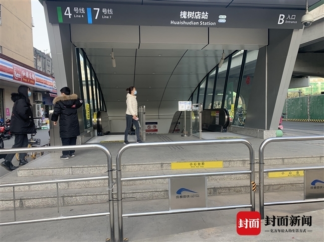 根据网上传播的图片,成都地铁槐树店站B口,一辆小汽车车头朝站内停在台阶上,车子尾部撞到地铁口外的护栏,护栏最下面一根被撞破了一段。护栏没有被完全撞开,汽车是怎么开进地铁口的呢?2月20日上午10点过,记者来到事发现场,此时汽车已经被拖走,护栏也已更换,现场看不到任何事故的痕迹。