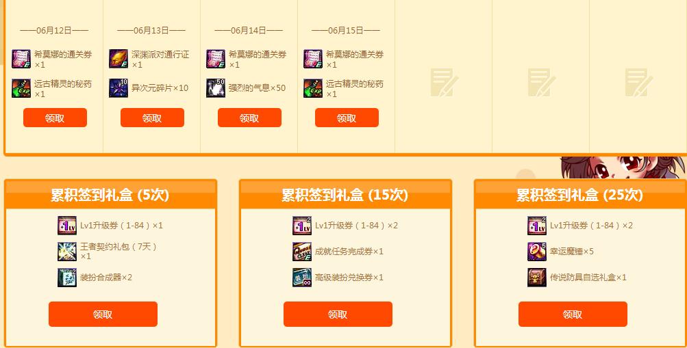每天一签,累加次数,周日累加双倍,累加满5次,15次,25次等有特殊奖励。活动不能忘记几天不登,不然领不到最后的,对于某一个月的游戏上线率有大幅提高。