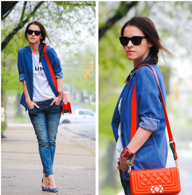 铆钉外套和破洞牛仔裤也是一对CP,它也是你街头潮范的必备,不管是铆钉机车夹克还是牛仔外套大写的「帅酷」,充斥着你骨子里的青春。当以往的荷尔蒙平静,刺儿褪去,它也应该存在你记忆的相册里,与之一起被回忆的应该还有叮叮铛铛朋克范的元素或饰品。