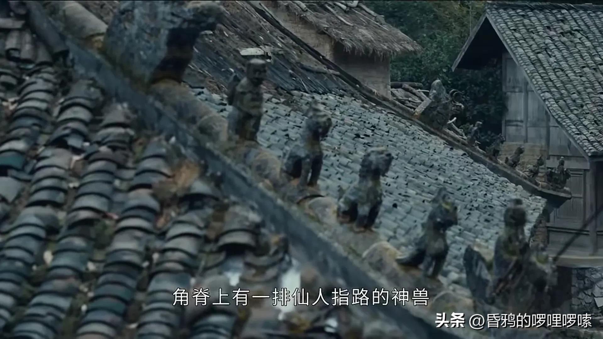江照爬上屋顶逃窜,逃跑之际,甩出身上带着的锤子,不小心一锤砸掉了祠堂梁上的“蹲脊兽”行什。