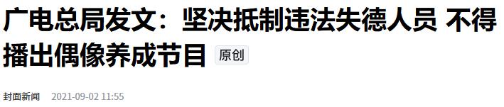 封面新闻2021-09-02广电总局发文:坚决抵制违法失德人员 不得播出偶像养成节目