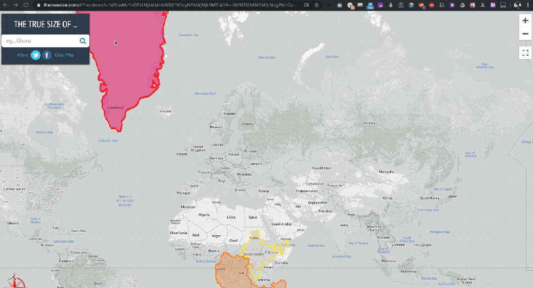 比如在地图上看起来硕大无比的格陵兰岛,实际上还没有印度大,跟中国比起来,更是个弟弟了。