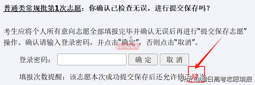 考生点击“保存志愿预填表”,系统提示让考生确认并输入登录密码,如下图: