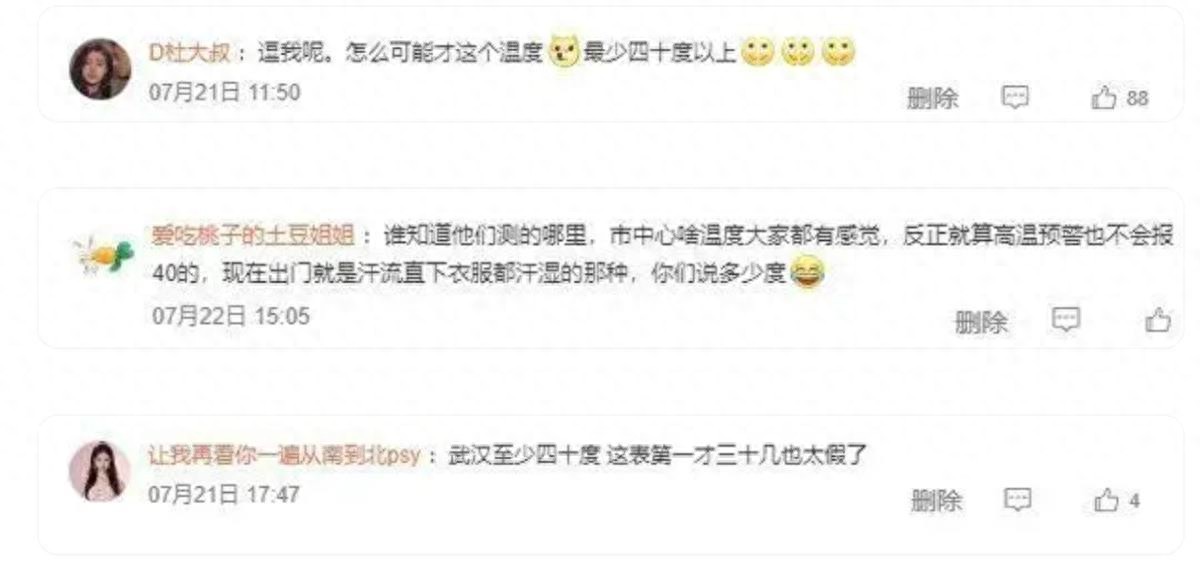 每到盛夏高温天,一个对气象部门的质疑声便会出现:已经这么热了,天气预报真的不敢报40℃?气象部门为此作了专门解答,认为这是误会了。(据7月24日极目新闻报道)