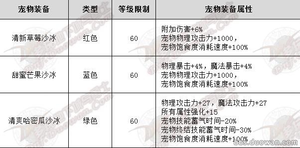 夏日宠物装备属性