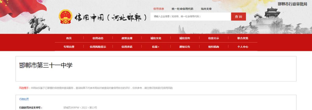 信息来源:信用中国(河北邯郸)网站