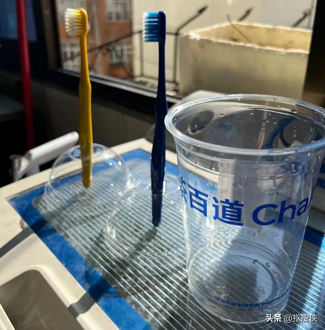 不想要用酒店里的一次性牙刷太硬伤牙齿,不想用酒店的一次性杯子怕不干净,奶茶杯子就可以携带当做临时牙具杯,奶茶盖子可以固定牙刷,杯子就当漱口杯。