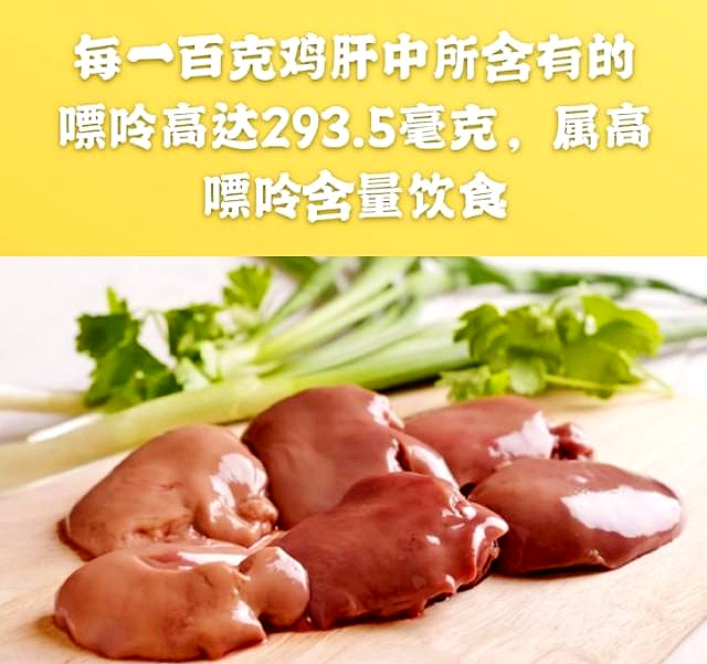 ●对于一整只鸡来讲,嘌呤含量比较高的地方还是在内脏,每100克鸡肝当中所含有的嘌呤高达293.5毫克,无论是否发作为痛风,只要尿酸异常的人群,鸡肝或者其它内脏都是不应触碰的食物。