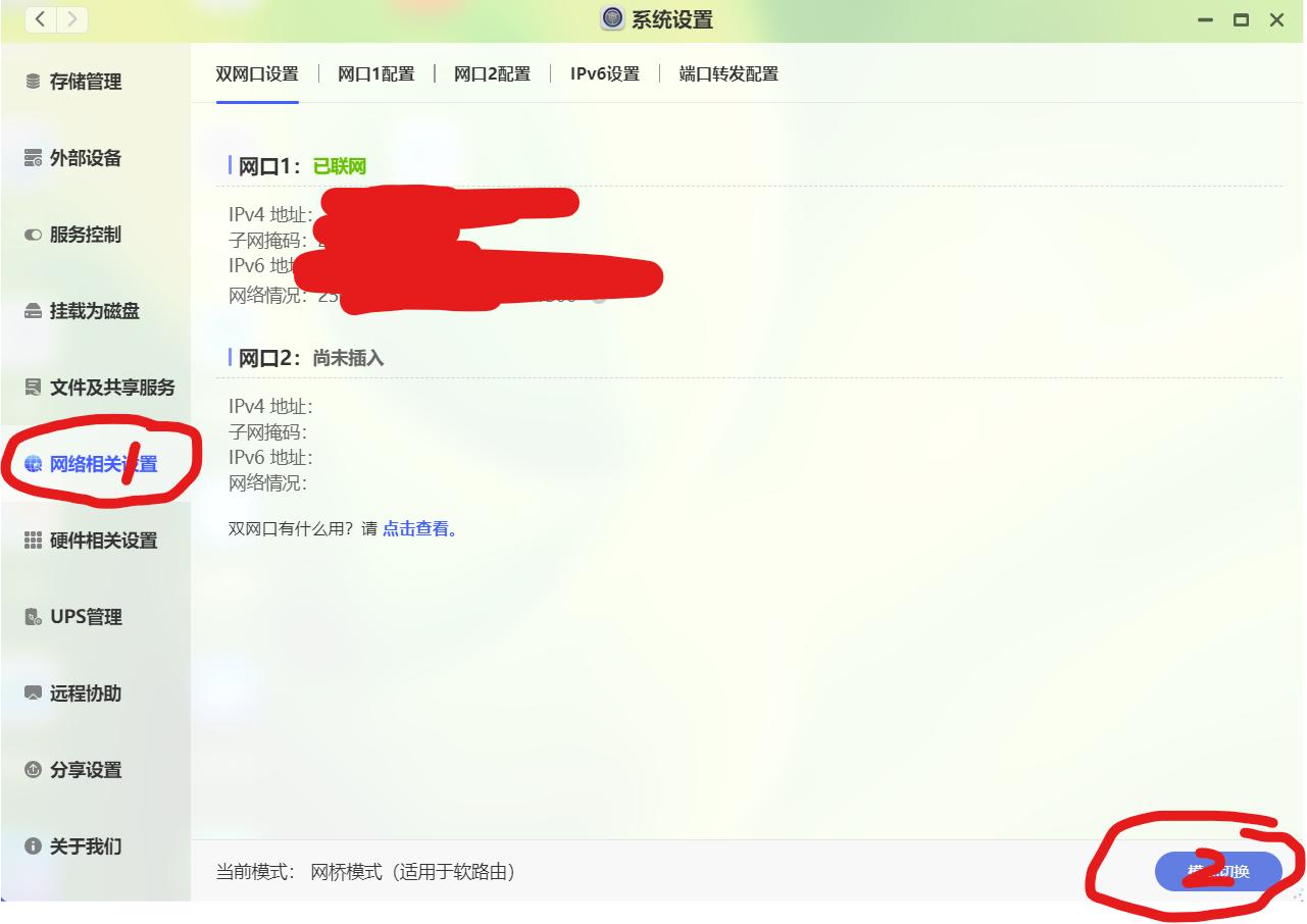 物理网口,指的是你极空间的背后的口,是哪个插在路由器上。你就选哪个。选错了,后面如果发现运行不了,这里再来调。如果你现在就插了一根网线,默认的基本就是对的