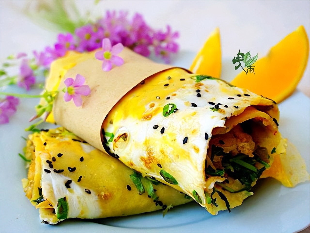 早餐时,吃一个薄煎饼,加一点黄油、火腿肠和牛奶,它很简单,省时而且非常美味。