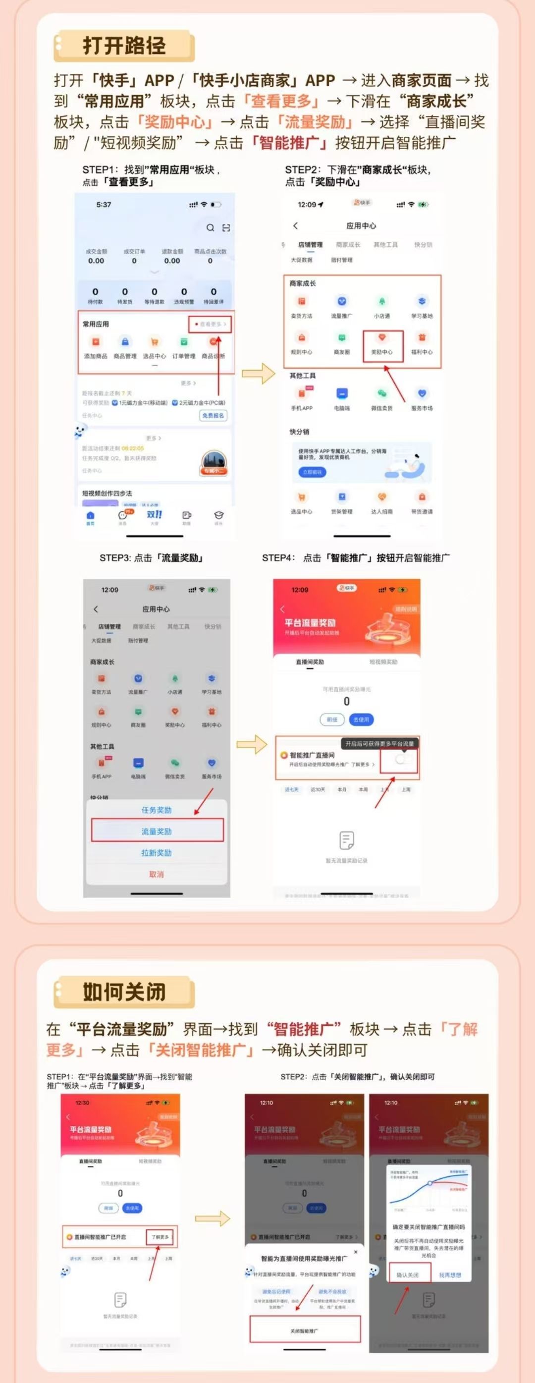 为了更好地助力商家成长,降低中小商家运营难度并提升运营效率,增加中小商家的流量曝光机会,快手电商近期针对中小商家的运营体验优化,进行产品升级,上线流量奖励智能推广功能,降低流量奖励使用门槛。