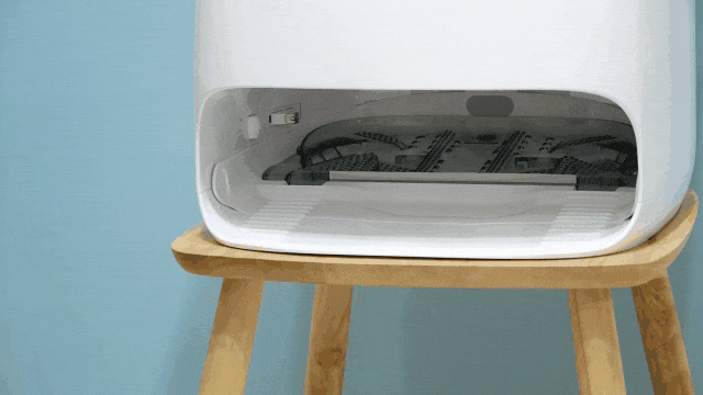 基站顶盖开合自然阻尼适中,顶盖内侧颇为巧妙的藏着扬声器,基站上沿的银色装饰条点缀恰到好处。清水箱与污水箱用颜色区分,且带防呆设计,提拉也很顺手。