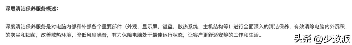 与此同时,清灰作为一项很常见也很基本的保养手段,也会被一些品牌作为专门的服务推出、在通过官方渠道进行服务的前提下是不会对产品的保修状态产生影响的: