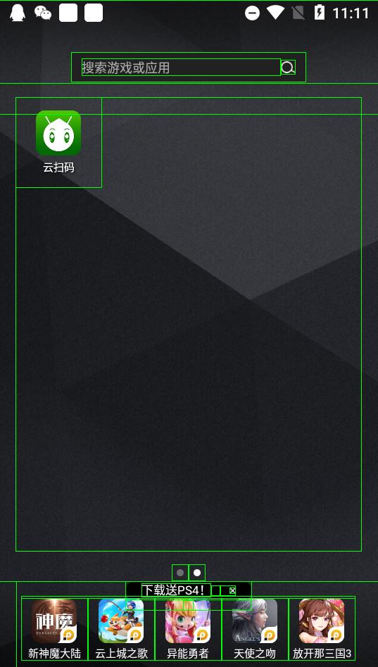 这是模拟两个屏幕,一个“小屏”,一个“大屏”,假设我要点击上面的脚本app(云扫码),小屏点击的坐标是(x,y),大屏点击的坐标是(x1,y1),如果我们比较x和x1,或者y和y1,很明显两者数值是不相等的。