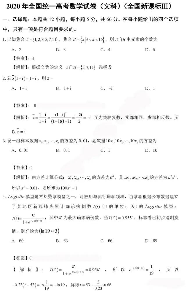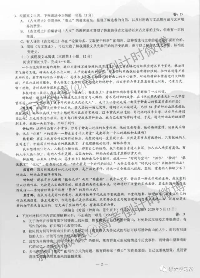 来对答案啦!2020贵州高考各科试题及参考答案完整版来了!