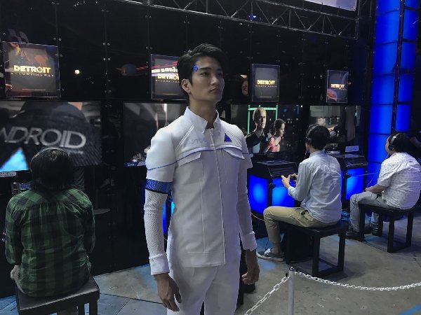 环球网智能记者调查后发现,其实这是为索尼公司旗下主机平台PlayStation 即将推出的游戏大作《Detroit : Become Human》进行展示的真人模特。