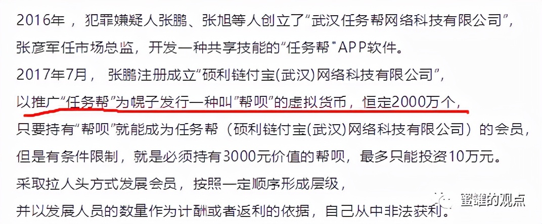 因为有了任务帮代币"邦呗"的前车之鉴,张鹏更了解虚拟币才是热点,而且用零撸的方式更容易吸引流量。零撸怎么赚钱?这套路可太深了,回头细聊。