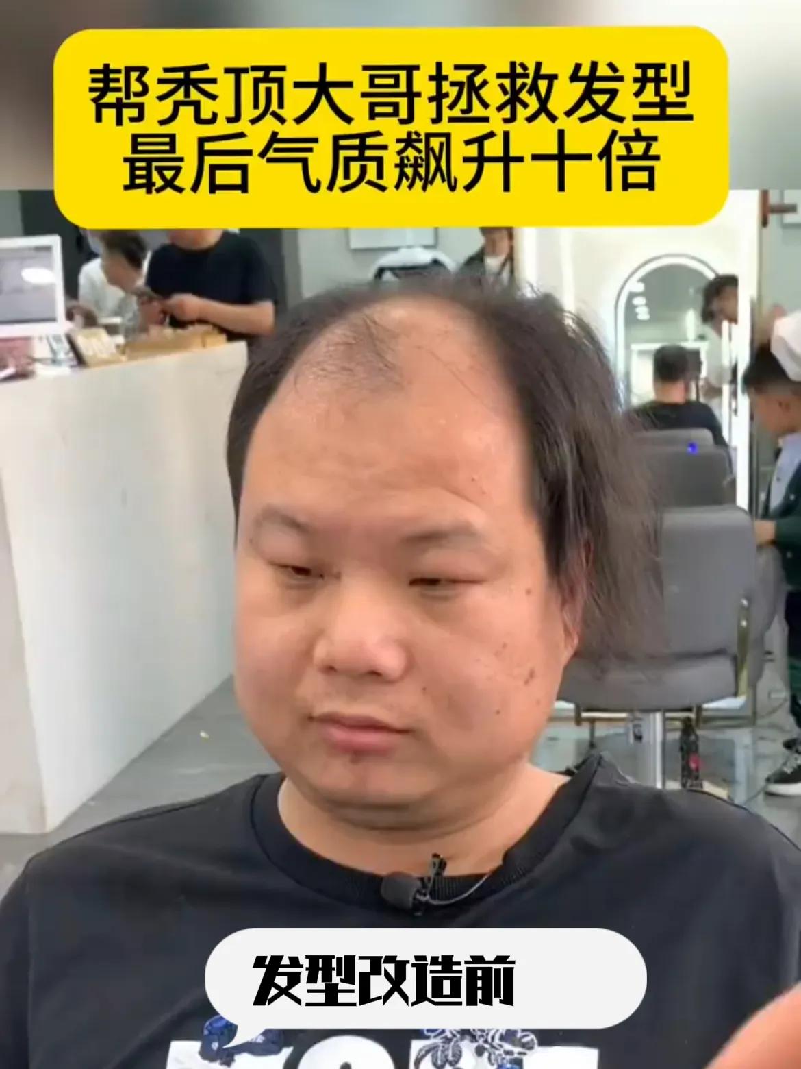 这款发型不谈帅,更不谈有没有型!能盖住光亮的颅顶救万事大吉了!