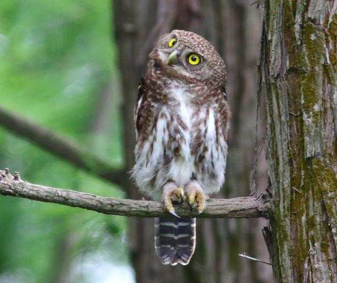 猫头鹰喜爱在山地森林、开阔的草丛、郊区的农田等处栖息生活。截至目前,在浙江共有斑头鸺鹠、领角鸮、草鸮、褐林鸮、雕鸮等14种猫头鹰,在杭州最容易被我们遇到的就是斑头鸺鹠。