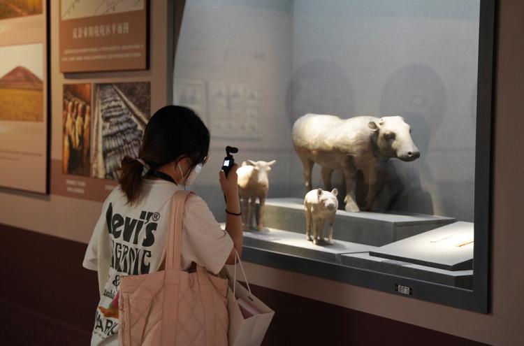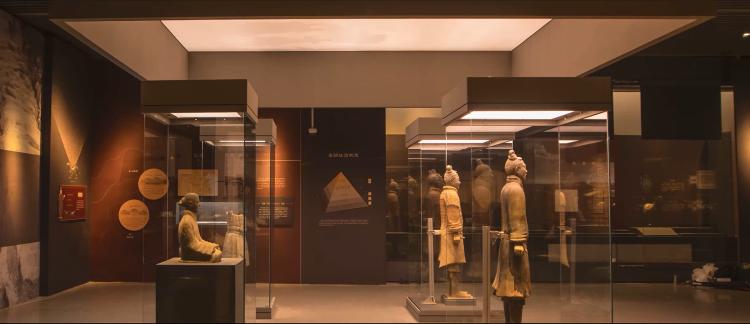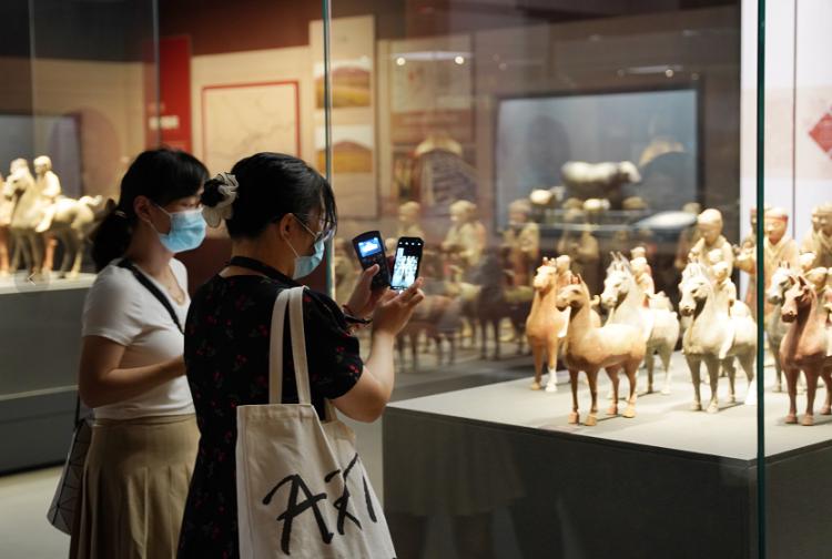 那么到了汉代展区的话,非常珍贵的就是汉景帝阳陵出土的两组骑马武士俑。这两件展品也是我们以成组成序列的状态呈现给观众的,它们代表了汉代的俑的制作工艺,还有当时的阵列情况,观众通过展览都可以做进一步的了解。